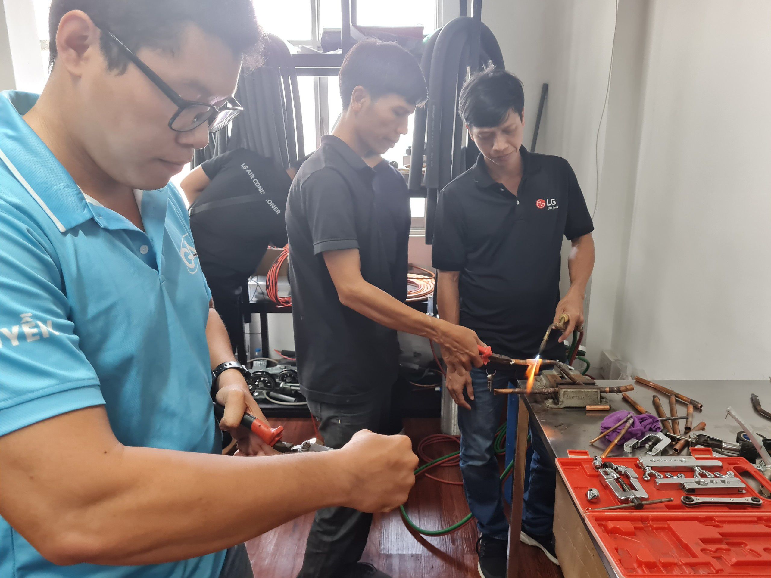 BKC phối hợp với LG Academy tổ chức training cho các đơn vị nhà thầu điều hòa. Hoạt động hướng dẫn diễn ra sôi nổi với sự nhiệt tình của các chuyên gia đến từ LG và sự háo hức cũng như nghiêm túc tiếp thu của các đơn vị đối tác.