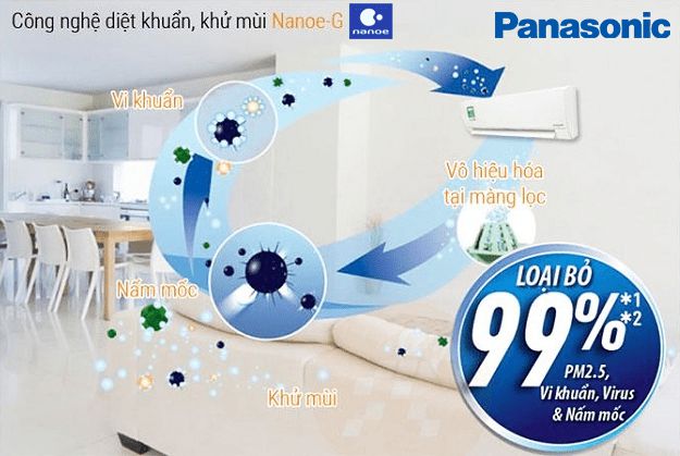 nanoe-G tích điện cho các hạt bụi nhỏ như PM2,5 bằng điện âm và hút lấy chúng. Máy điều hòa sử dụng luồng khí hút để hút và thu gom bụi vào một bộ lọc không khí. Miễn máy điều hòa hoạt động thì không khí trong phòng liên tục được làm sạch.
