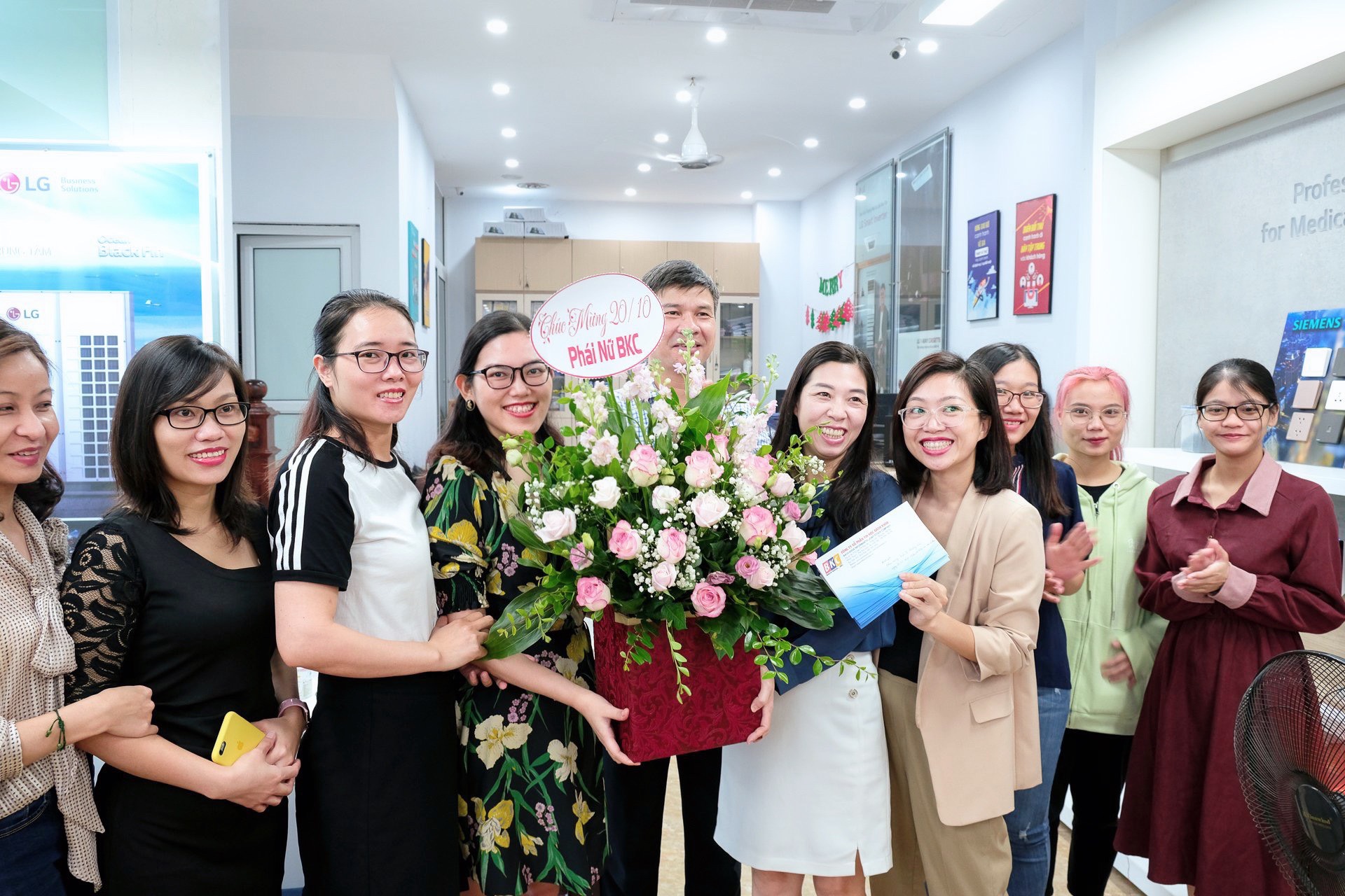 Với quan điểm chú trọng phát triển cốt lõi con người, tại BKC đời sống tinh thần của cán bộ nhân viên luôn được quan tâm đúng mực. Nhân ngày Phụ nữ Việt Nam, chương trình chúc mừng trao hoa, tặng món quà nhỏ được BKC tổ chức gọn nhẹ đầm ấm để thắt chặt thêm sợi dây tình cảm giữa các thành viên.