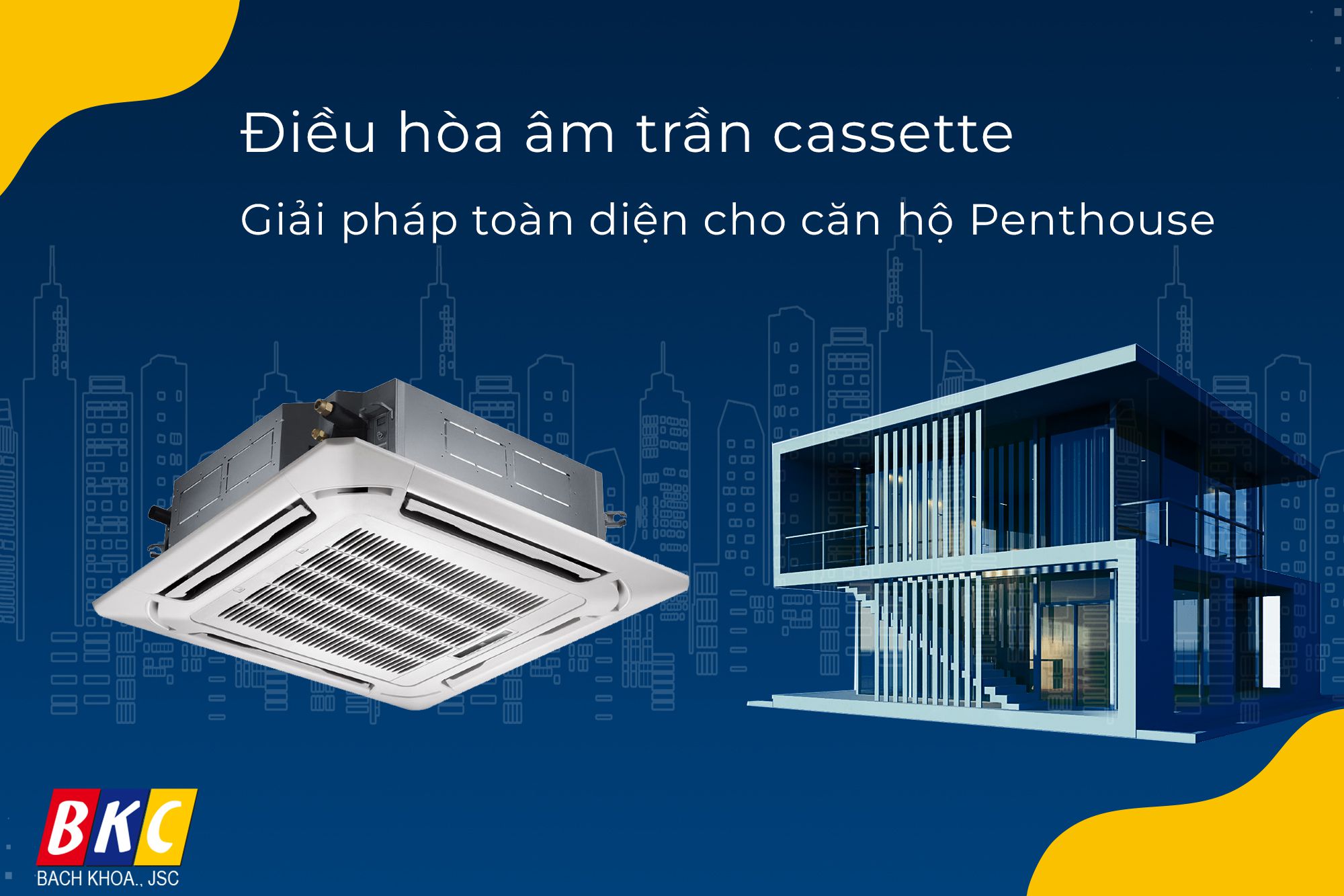 Tiện nghi và sang trọng chính là 2 tiêu chí cực kỳ quan trọng mà gia chủ quan tâm khi lựa chọn dòng điều hòa lắp đặt cho biệt thự, penthouse. Sở hữu không gian rộng, nhiều phòng đòi hỏi một hệ thống điều hòa đáp ứng đủ công suất nhưng không được phá vỡ thiết kế không gian, hài hòa với nội ngoại thất của ngôi nhà. Vì thế, điều hòa âm trần chính là sự lựa chọn hoàn hảo cho biệt thự. Trong bài viết này, cũng BKC điểm qua những ưu điểm nổi bật của điều hòa âm trần cassette hoàn toàn phù hợp cho không gian penthouse.