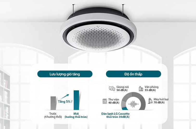 Điều hòa LG cassette cửa tròn giúp hạn chế tiếng ồn