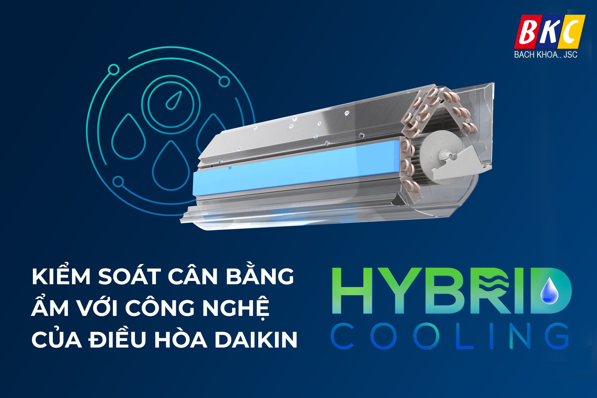 Công nghệ Hybrid Cooling trên máy lạnh Daikin có thể kiểm soát đồng thời nhiệt độ và độ ẩm qua một cảm biến đo độ ẩm gắn trong máy. Cảm biến này theo dõi độ ẩm trong phòng, khi nhận thấy độ ẩm trong phòng cao, cảm biến sẽ báo về máy để điều tiết gas qua số lượng dàn ống trao đổi nhiệt.