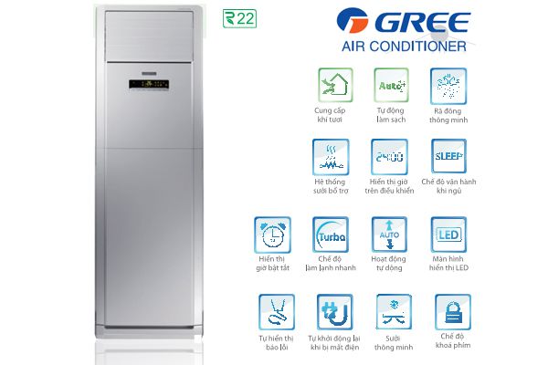 Các tính năng nổi bật trên dòng máy lạnh tủ đứng Gree: