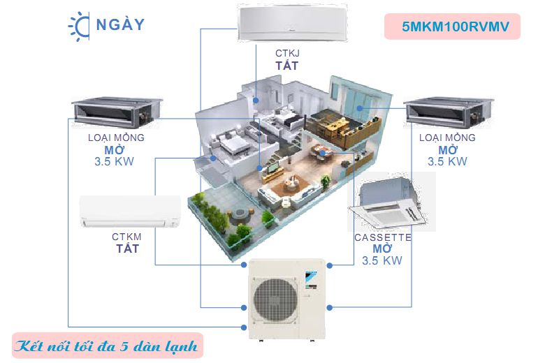 Điều hòa Multi Daikin được thiết kế chuyên biệt cho các hộ gia đình có diện tích tương đối rộng, gồm nhiều phòng khác nhau và đang có nhu cầu lắp đặt hệ thống dàn lạnh điều hòa riêng biệt. Chỉ với 1 dàn nóng dễ dàng lắp đặt tại ban công với diện tích từ 5m2, người dùng có thể lắp đặt từ 3-5 dàn lạnh khác nhau như treo tường, âm trần cassette, âm trần nối ống gió, giấu ống gió,...đến từ các thương hiệu lớn như Daikin, Panasonic, Mitsubishi tùy thuộc vào nhu cầu và sở thích của từng hộ gia đình. Đối với dòng điều hòa Multi của Daikin, khách hàng có thể lựa chọn sản phẩm tối ưu có thể kết nối đến 14 dàn lạnh khác nhau, giúp tiết kiệm tối đa không gian và tạo thế mở cho toàn bộ căn phòng.