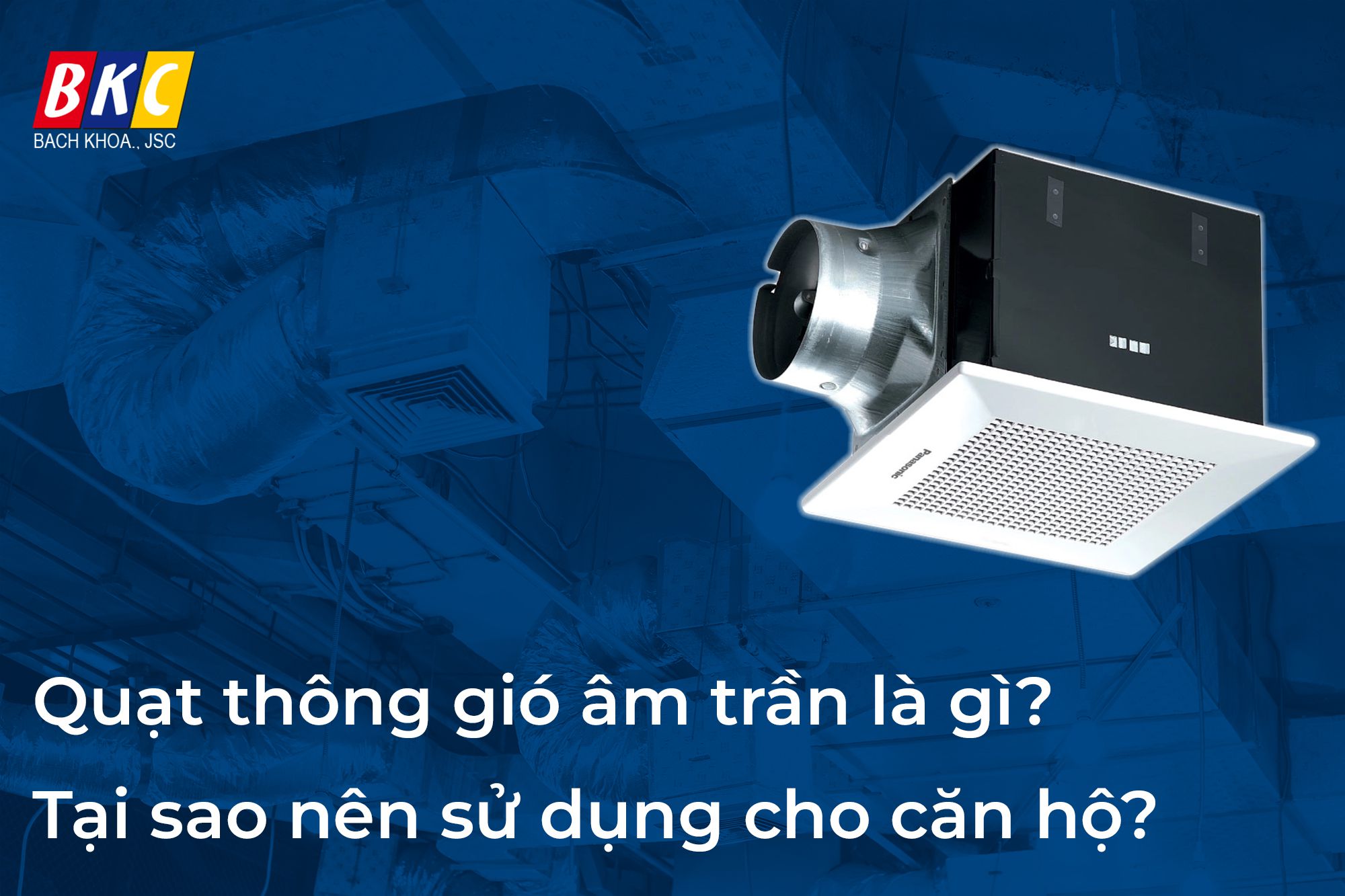 Trong điều kiện môi trường sống có nhiều biến đổi bởi những chất thải vào thiên nhiên như hiện nay. Các nhà sản xuất đã không ngừng mang đến những loại quạt thông gió chất lượng để có thể cải thiện, làm sạch không khí. Mang đến môi trường sống thoáng đãng và trong lành cho con người. Và quạt thông gió âm trần là bước cải tiến mạnh mẽ của các nhà sản xuất. Vậy quạt thông gió âm trần là gì? Vì sao nên sử dụng cho căn hộ? Hãy cùng BKC tìm hiểu qua bài viết dưới đây nhé!