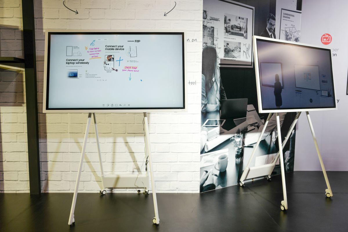 Hyunho Choi, thuôc nhóm Hoạch định Sản phẩm Doanh nghiệp tại Samsung Electronics cho biết: “Trong khi các buổi thuyết trình thường được diễn ra trong các phòng họp có diện tích vừa và lớn, thì hoạt động đưa ra ý tưởng thường diễn ra ở những không gian nhỏ hơn.Chúng tôi xác định rằng 55 inch là kích thước lý tưởng cho một màn hình được sử dụng trong những diện tích nhỏ gọn, phù hợp với các nhóm từ 5 đến 10 người.”