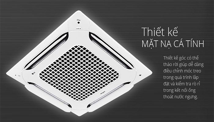 + Thiết kế gọn nhẹ, hiện đại, mặt nạ dàn lạnh âm trần vuông đồng nhất, mang tính thẩm mỹ cao, hài hòa, dễ dàng trong việc bố trí lắp đặt, lắp được ở cả những không gian trần thấp, khá linh hoạt.