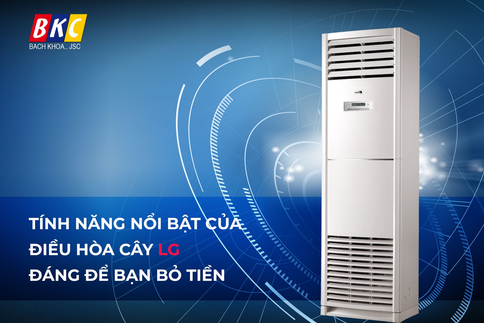 Điều hòa cây LG không chỉ sở hữu kiểu dáng hiện đại, sang trọng mà còn nổi bật với công nghệ làm lạnh nhanh, khử mùi hiệu quả và tiết kiệm kiện điện, đáp ứng đầy đủ hầu hết mọi nhu cầu của khách hàng, do đó đây là một trong những lý do vì sao điều hòa cây LG luôn được sử dụng ưa chuộng trên thị trường. Hãy cùng BKC tìm hiểu những lý do để bạn tin chọn dòng điều hòa cây LG qua bài viết.
