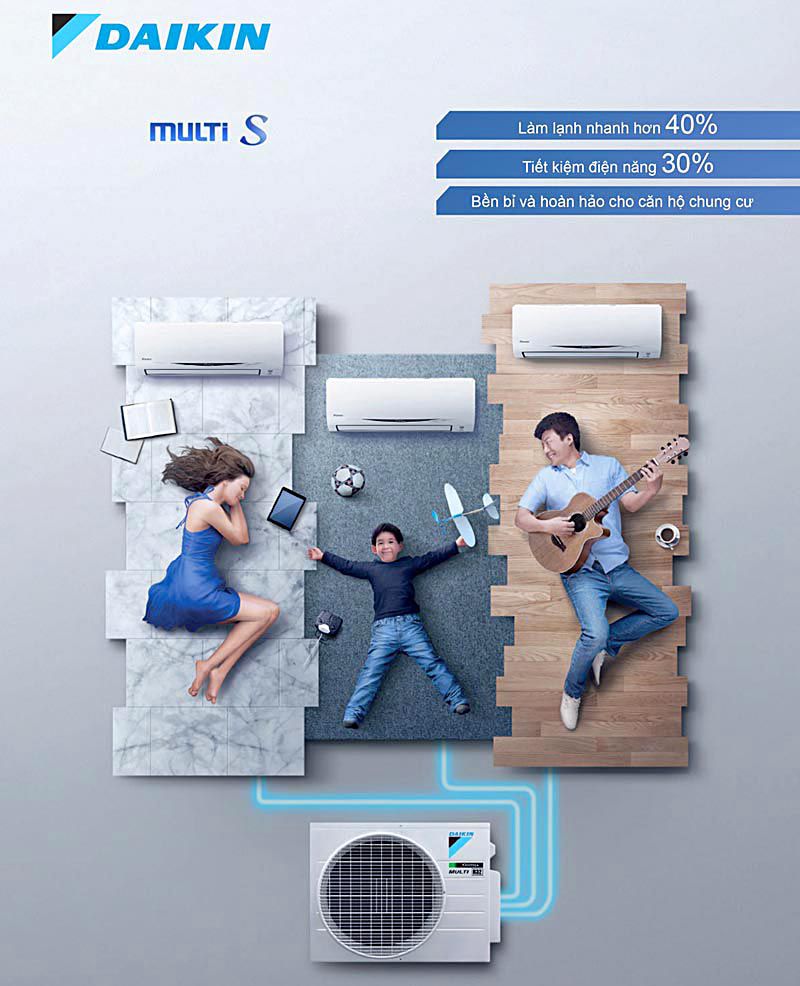 Theo kinh nghiệm tư vấn và lắp đặt của chuyên gia Daikin, với căn hộ chung cư diện tích nhỏ (40-70m2), lựa chọn hệ thống điều hòa multi S Daikin là giải pháp hợp lý.